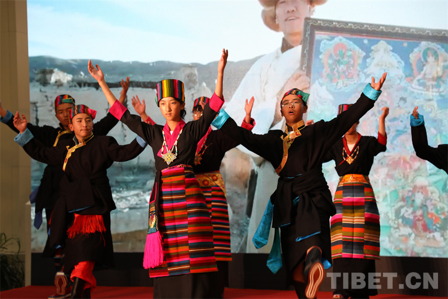 图为开幕式上,来自西藏的绘画作者为观众表演舞蹈 摄影:王茜