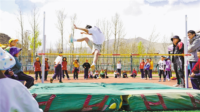 图为学生在参加跳高比赛。记者 格桑伦珠 摄