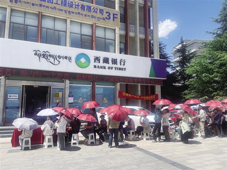 同时,在西藏银行总行营业部门口,也有很多考生和家长排队领取报纸,工作人员还为他们送上了矿泉水、雨伞等物品,考生和家长纷纷点赞。