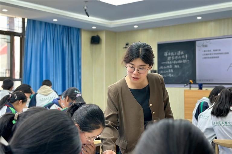 在拉萨北京实验中学,北京援藏教师马潇雅上语文“双师”课《中华同源》。拉萨北京实验中学供图