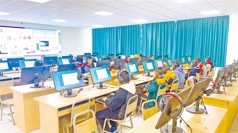 2024年,那曲市色尼区第二小学学生在学习计算机知识。 那曲市色尼区委宣传部供图