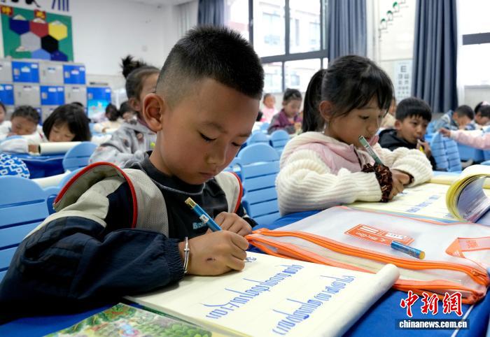 9月1日,拉萨市第一小学一年级二班的学生们在藏语文课上书写藏文。近日,西藏拉萨市秋季学期开学,各项教学工作有序开展。中新社记者 李林 摄