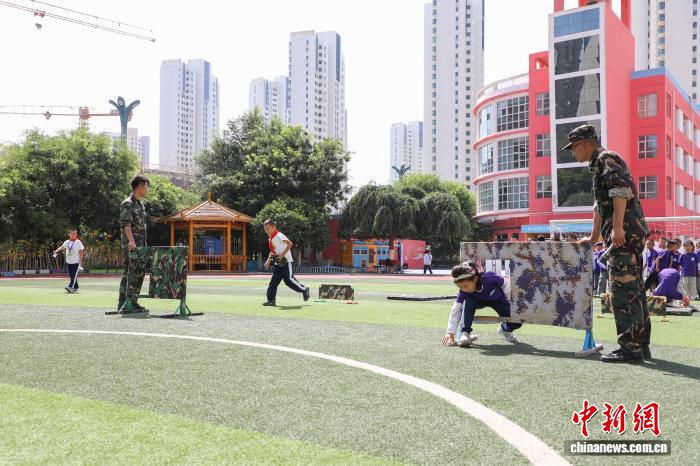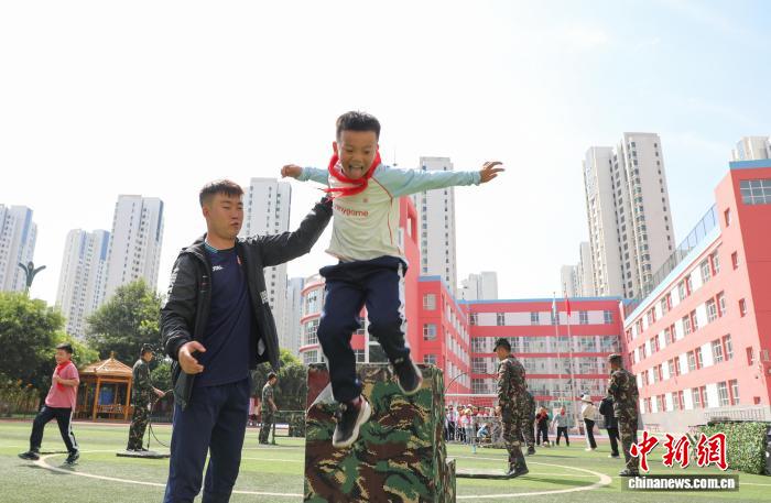图为学生体验组合障碍训练。中新社记者 马铭言 摄