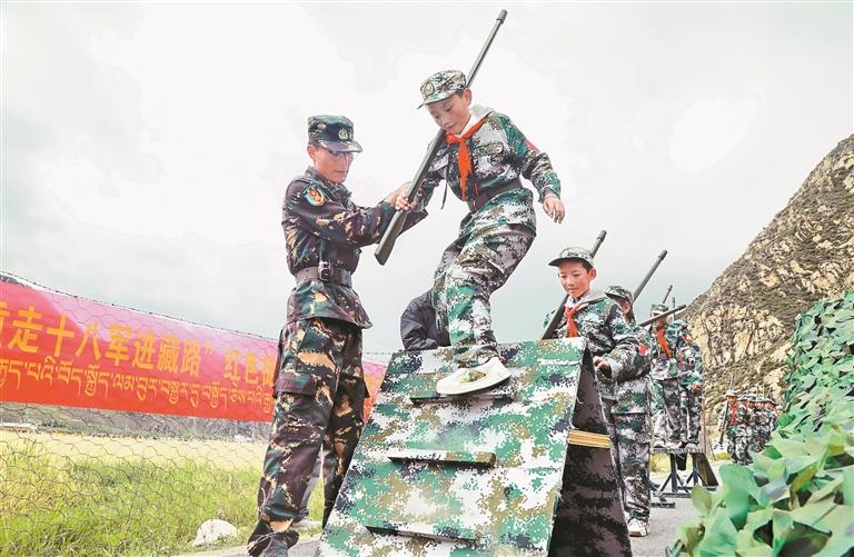 图为学生在体验跨障碍物训练。记者 格桑伦珠 摄