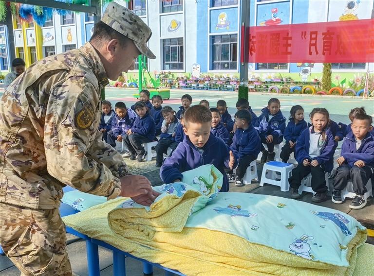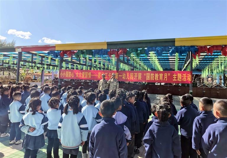 近日,墨竹工卡县第一幼儿园以“国防教育月”为契机,开展国防教育主题活动。