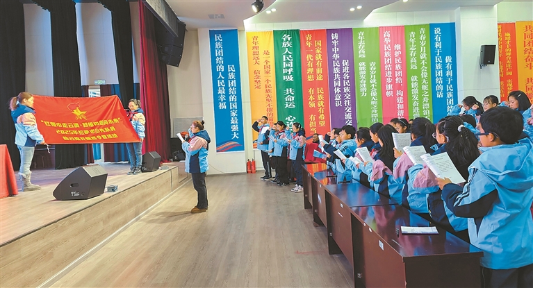1月4日,拉萨市少年儿童活动中心彩旗飘扬,歌声嘹亮,“红领巾走云滇·践悟红色新征程”红色研学寒假冬令营开营仪式在此举行。