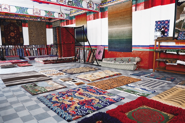 在藏毯厂陈列厅里,悬挂着一幅以布达拉宫为题材的藏毯。“眼前的这幅藏毯已经悬挂十年,没有任何变形。”喀瓦坚藏毯厂工作人员彭志红说,可见手工藏毯的质量绝佳。