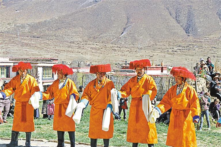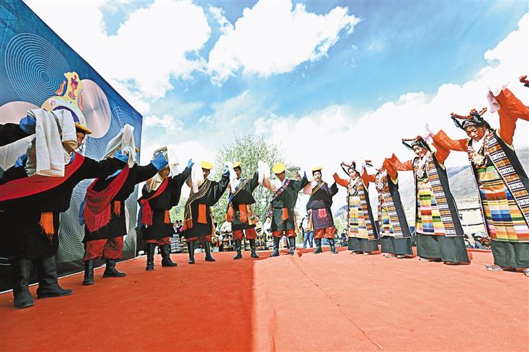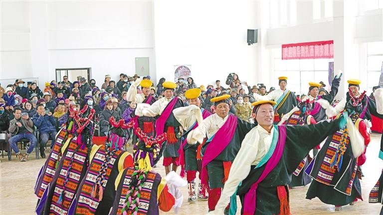 甲玛乡谐钦队在非遗巡展活动上表演谐钦。