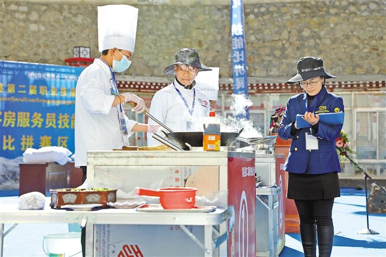 图为评审专家在为厨艺比赛项目选手打分。记者 丹增平措 摄