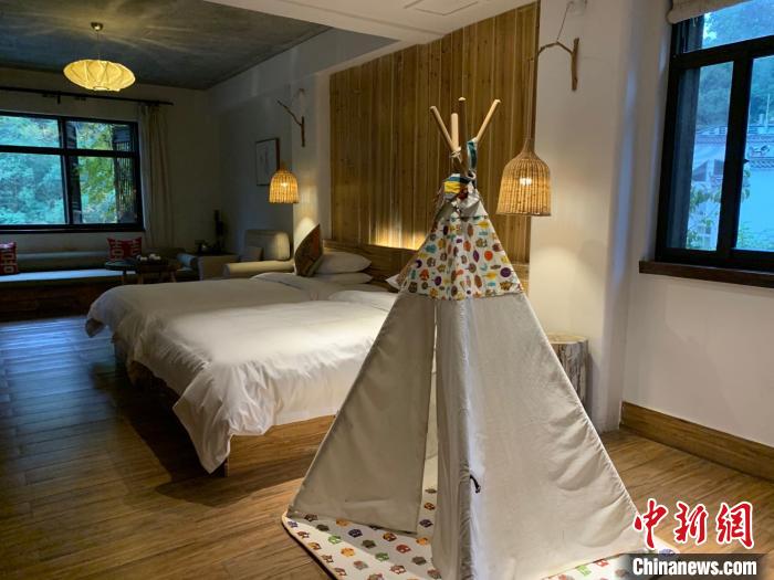 记者近日走进“桃源人家”民宿看到,这是一幢由农家小院改造而成的民宿,外观清新而古朴,房间内简约而温馨。该民宿四面环山,眼下正值秋季,倚窗远眺,漫山层林尽染,空旷怡人,乡村美景尽收眼底。