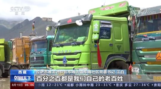 拉萨市堆龙德庆区东嘎街道东嘎社区党委书记 江白:运输里面百分之百都是我们自己的老百姓,2009年当时我们只有40个车子,然后就是2016年我们差不多180辆车,已经扩大了。