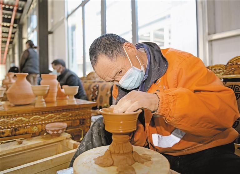 图为拉萨市墨竹工卡县工卡镇塔巴村村民在制陶。记者 潘多 摄