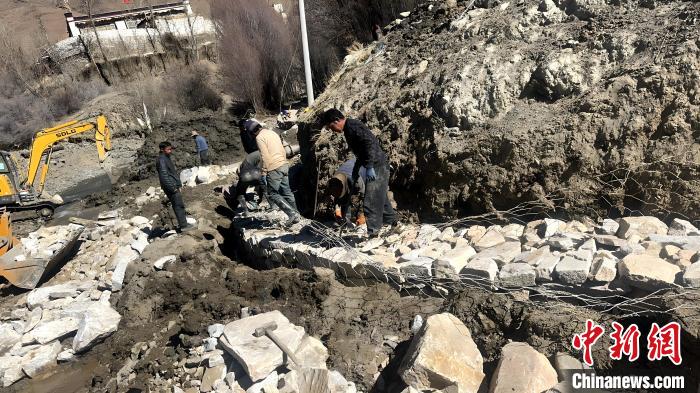 图为工作队组织人员加固吐如雄村灌溉水池。工作队 供图