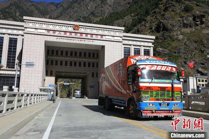 图为尼泊尔货车从吉隆口岸国门经过。肖富贵 摄