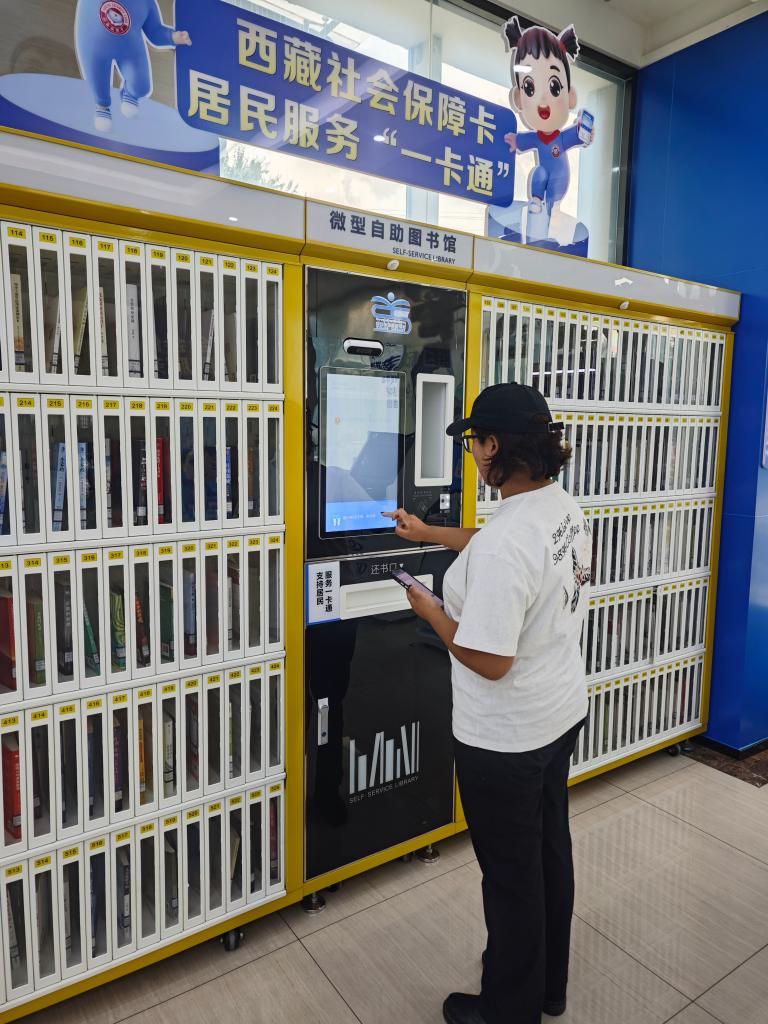 市民在中国建设银行拉萨城西支行使用社保卡借阅图书。(受访者供图)