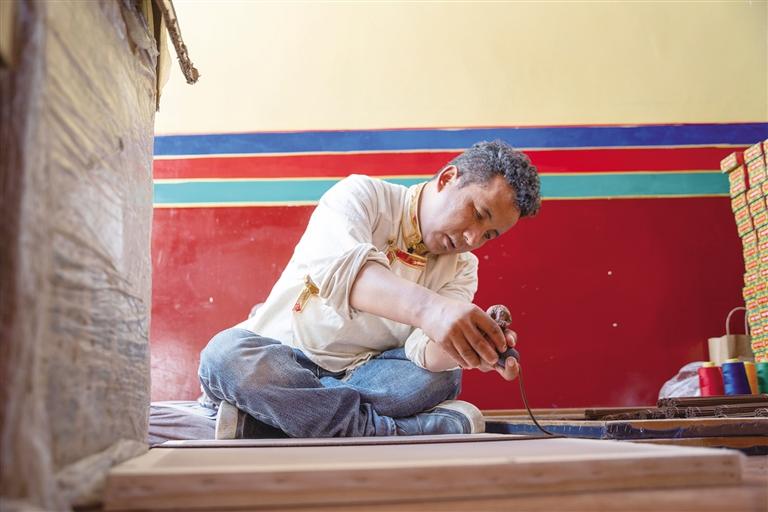 尼木县普松乡是著名的“雕刻之乡”,作为“尼木三绝”之一的普松雕刻是普松乡群众世世代代传承下来的一项古老技艺。近年来,在尼木县政府的积极引导和扶持下,普松雕刻这一传统技艺得以焕发新生,一把刻刀、一块木板,在匠人手中如同神奇的画笔,在乡村振兴的画卷上绘就出绚丽多彩的致富图景。