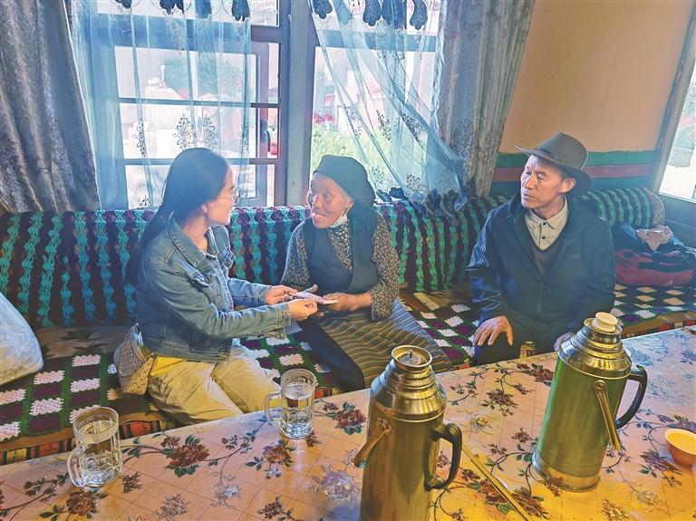 图为驻茶巴朗村工作队员,走进困难群众家中,将帮扶资金交到他们手中。记者 刘斯宇 通讯员 肖通 摄