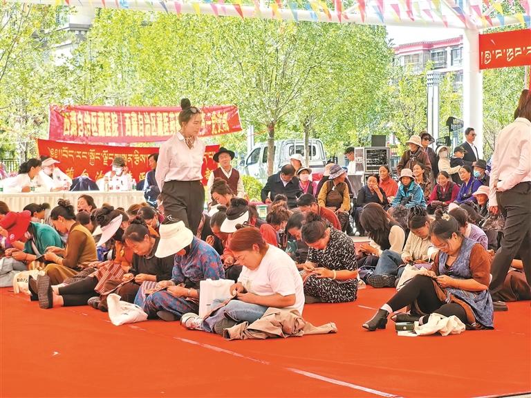 图为“格桑花”手工编织团成员专业技能大赛现场。记者 格桑伦珠 摄