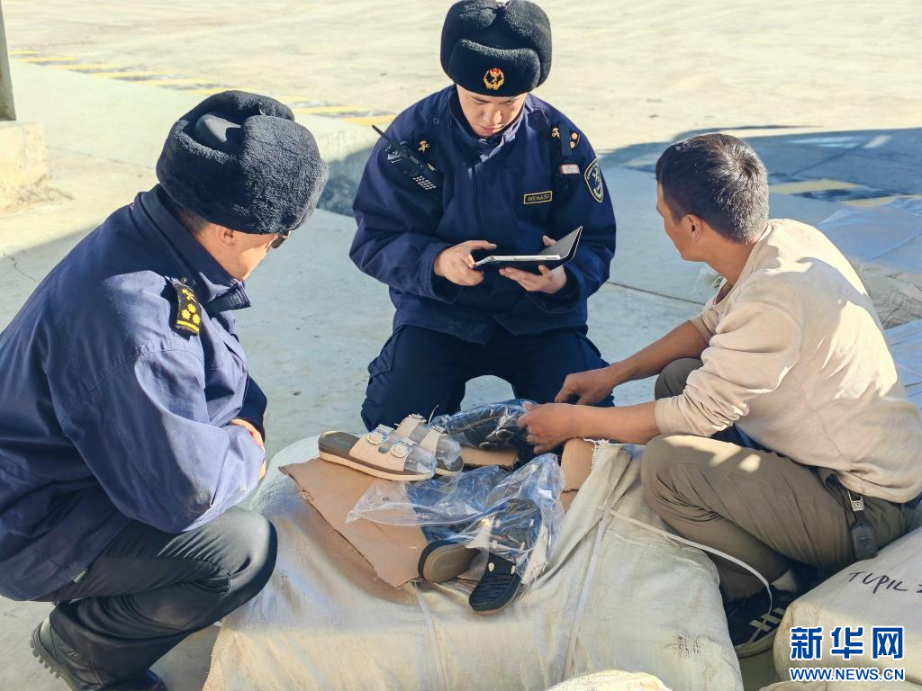23日,拉萨海关所属日喀则海关关员在里孜口岸查验出口货物。(拉萨海关供图)