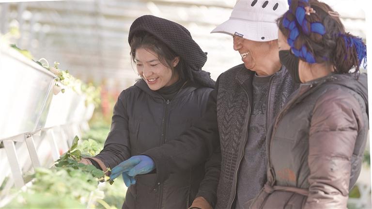 塔巴村的次仁曲珍听得认真,小心翼翼地掐下植株上的黄叶,又俯身拔净根部杂草。“能在家门口的大棚上班,真是再好不过了。”她直起身时,脸上漾着满足的笑,“既能照看老人孩子,每个月还能拿4000多块工资,更能跟着学实打实的种地技术,心里亮堂着呢!”