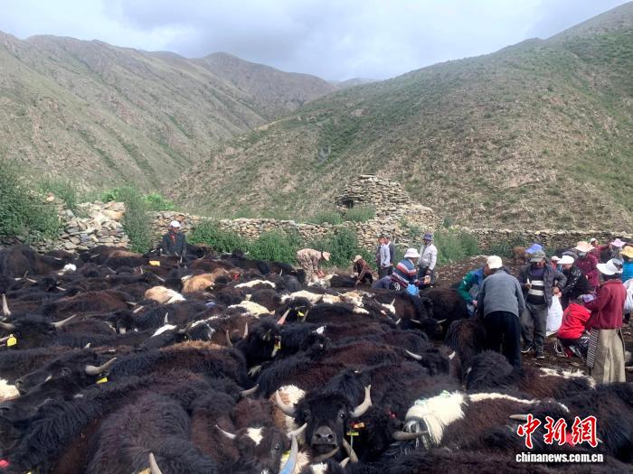 图为特日村股份合作社人员在清点牧场牦牛。曲杰 供图