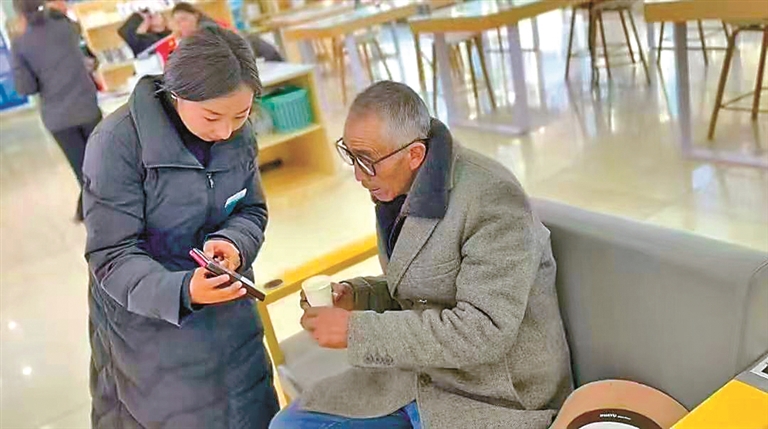 图为中国移动西藏公司工作人员向客户介绍如何查询消费账单。记者 李梅英 摄