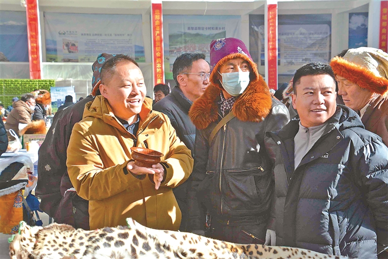“都是本地牧民自家养的、亲手做的好东西,品质看得见、吃得放心!”开幕式当天,市民扎西就赶到现场,选购了牦牛肉和奶渣。