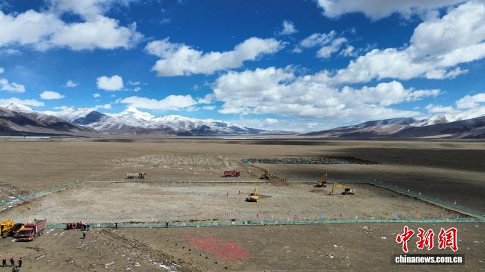 4月6日,全球海拔最高的槽式光热电站——中广核西藏乌玛塘50兆瓦光热项目在拉萨市当雄县乌玛塘乡正式开工建设,图为项目开工现场。(中国广核集团供图)