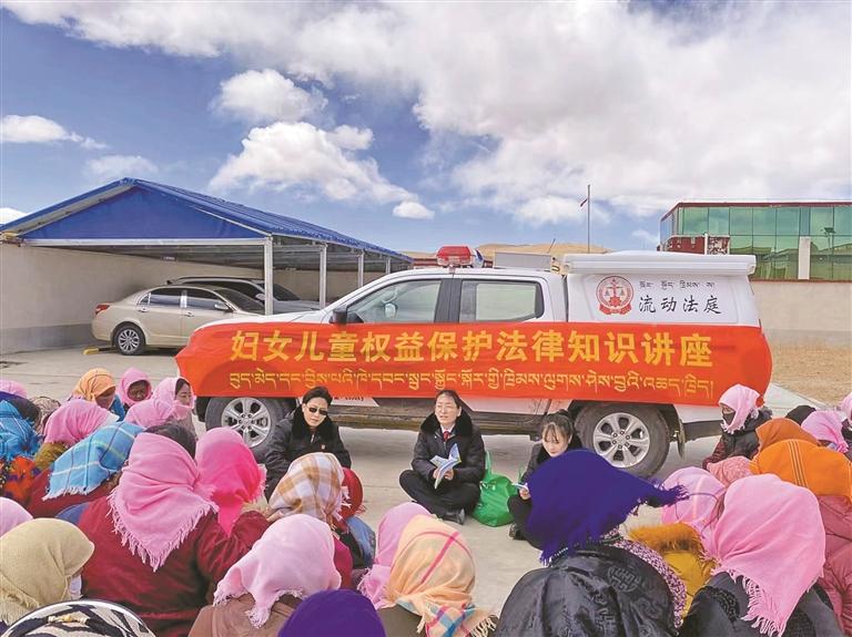 班戈县人民法院青龙东嘎人民法庭依托流动法庭开展妇女权益保障法专题法治讲座。文/图 记者 赵文慧 通讯员 巴色 次仁卓玛