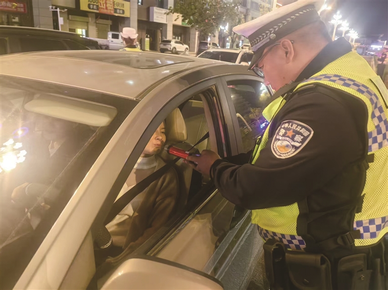 “您好,请吹气。”“谢谢您的配合,祝您一路平安。”行动中,执勤民警采取“定点检查+流动巡逻”相结合方式,对过往车辆“逢车必查、逢疑必检、有违必究”,对过往车辆进行逐一检查,严查超员、超速、无证驾驶、不系安全带、不戴头盔等交通违法行为,坚决做到发现一起,严处一起,全力营造严防、严控、严惩的高压整治态势,有力震慑各类交通违法行为,全力遏制重特大道路交通事故的发生,引导群众自觉遵守交规,文明出行。同时,民警还积极向广大驾驶员宣传交通安全知识,引导教育广大驾驶员养成“开车不喝酒,喝酒不开车”的良好习惯,营造共同遵守交通法律法规、安全文明出行的浓厚氛围。