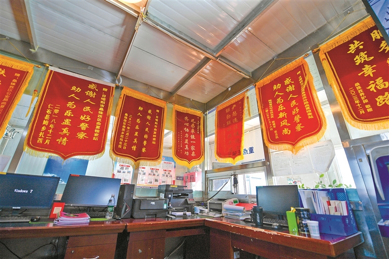挂满曲夏公安检查站的锦旗。