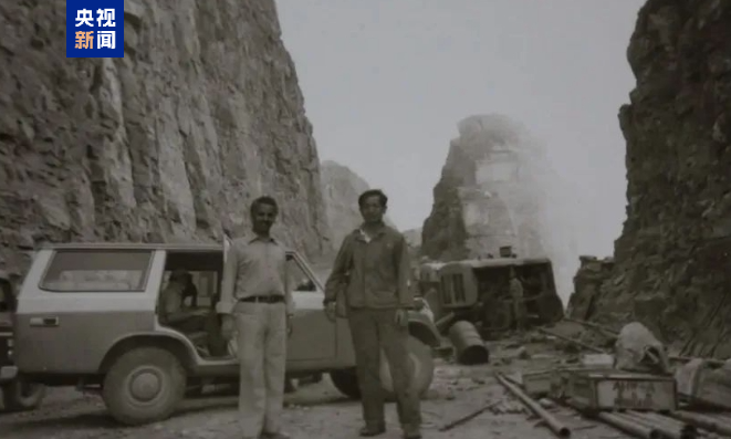 △海耶飞(左)在萨那——哈杰公路施工时的照片