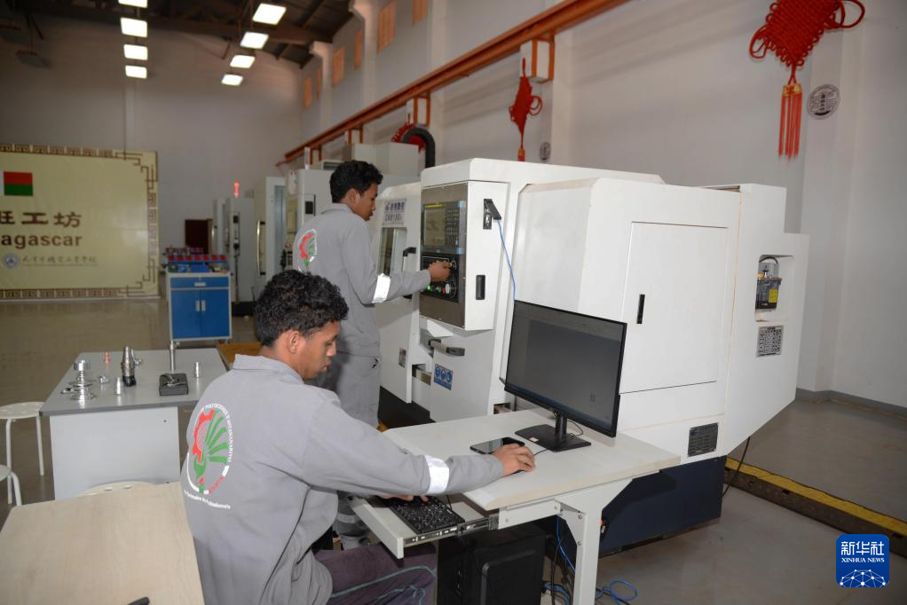 鲁班工坊机械工程专业负责人拉科东德雷尼贝指着面前用于教学实践的四台数控机床向记者介绍:“这些教学配置在整个马达加斯加是独一无二的。”