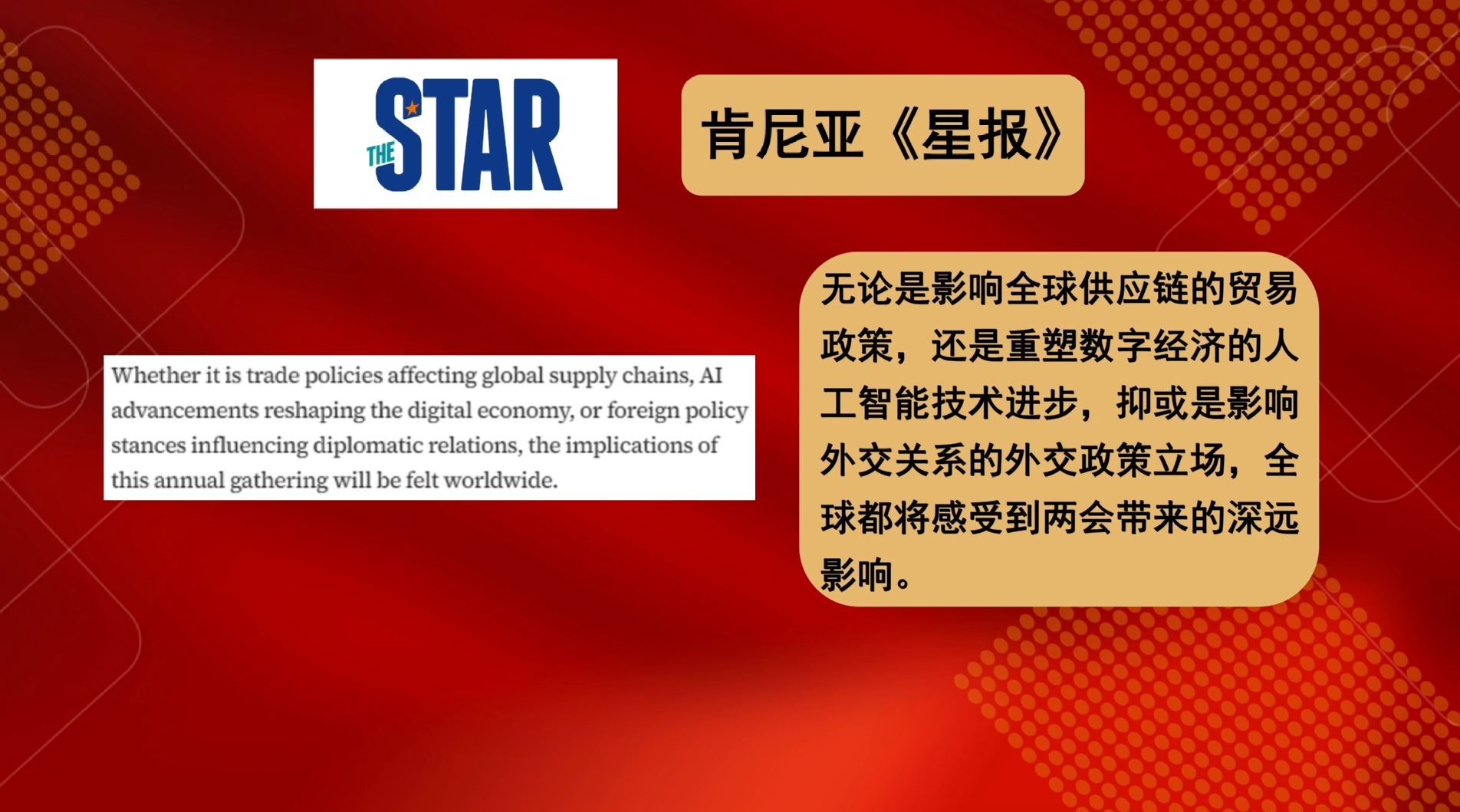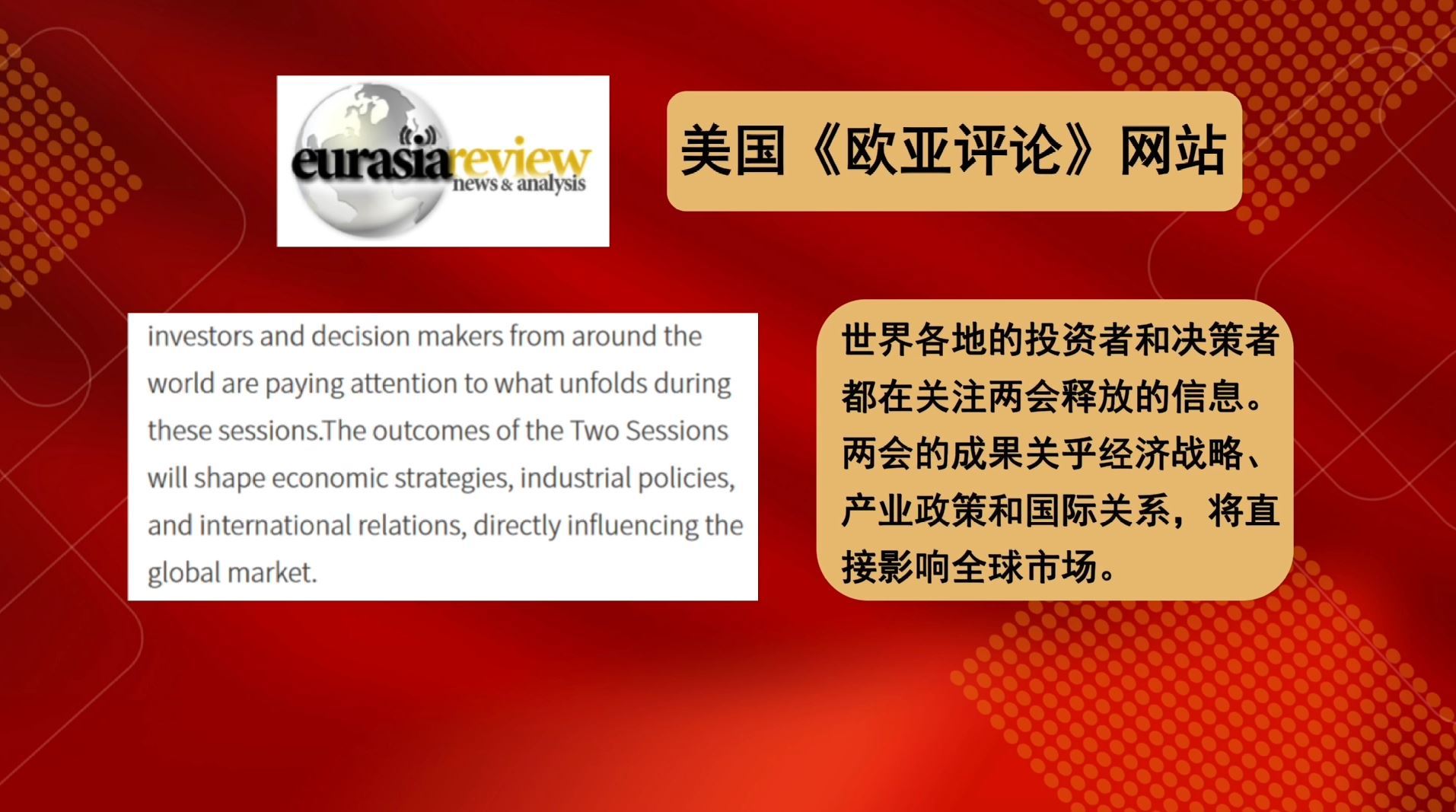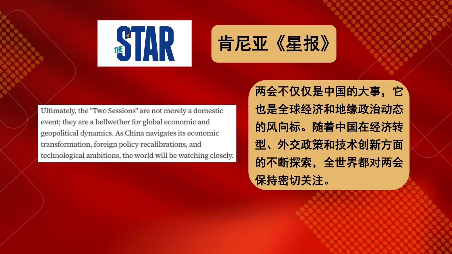 多家外国媒体纷纷用“全球性的重要意义”“直接影响全球市场”“全球的风向标”“全球感受到两会的深远影响”这些描述,对中国两会对世界的重要性给予高度肯定。
