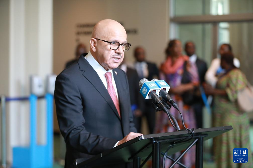 6月3日,在位于纽约的联合国总部,巴林外交大臣扎耶尼在巴林当选联合国安理会非常任理事国后讲话。新华社记者 谢锷 摄
