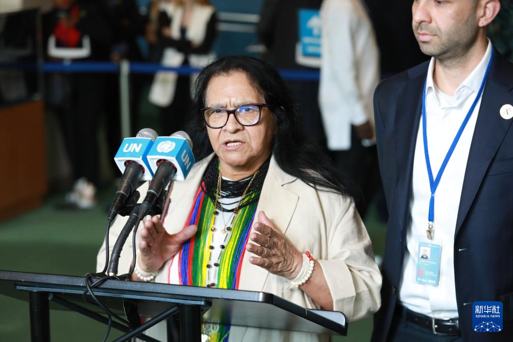 6月3日,在位于纽约的联合国总部,哥伦比亚常驻联合国代表托雷斯在哥伦比亚当选联合国安理会非常任理事国后讲话。新华社记者 谢锷 摄