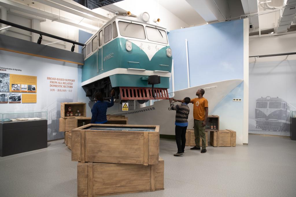 11月12日,在赞比亚坦赞铁路纪念园,几名当地人参观坦赞铁路纪念馆。新华社记者 彭立军 摄