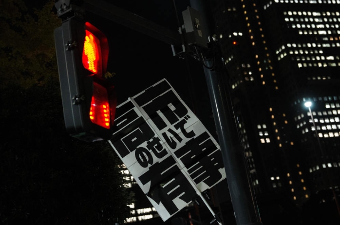 11月21日,在日本东京的首相官邸外,民众举起标语参加抗议活动。新华社记者 贾浩成 摄