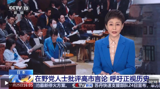 日本社民党全国联合常任干事 山城博治:我们大家都很气愤,把不必要的战争主动招来,把本不该发生的事情引来,把自己拖入战场。作为一个拥有和平宪法的国家,这是绝不可能被允许的事情。在1972年日中邦交正常化时,日本承认现在的中国政府是中国唯一的合法政府,明确表示“理解并尊重台湾是中国领土的一部分”,所以这次高市竟然能堂而皇之地说出如此不可能、不可思议的话,我感到非常愤怒。