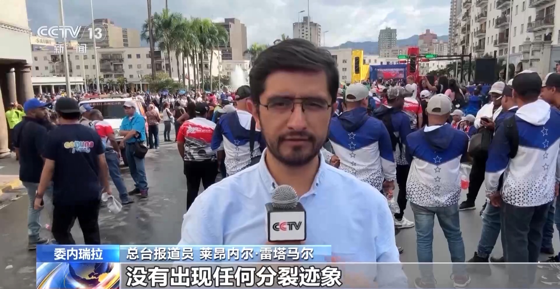 总台报道员 莱昂内尔·雷塔马尔:尽管遭受外部攻击和总统暂时不在国内,委内瑞拉人民展现出空前的团结,没有出现任何分裂迹象。恰恰相反,各界民众和军队均表达了对代理总统罗德里格斯的忠诚与支持。