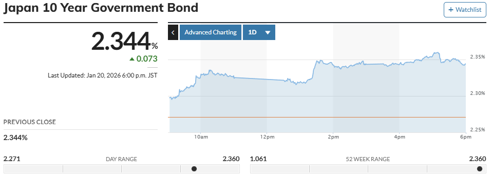 1月20日,日本长期国债在东京债券市场继续遭到抛售,导致收益率不断上扬。当天,作为日本长期利率指标的10年期日本国债收益率一度上升至2.330%,为1999年2月以来的最高水平。这一市场异动恰逢日本政局进入敏感时段,引发投资者对经济前景的深度忧虑。