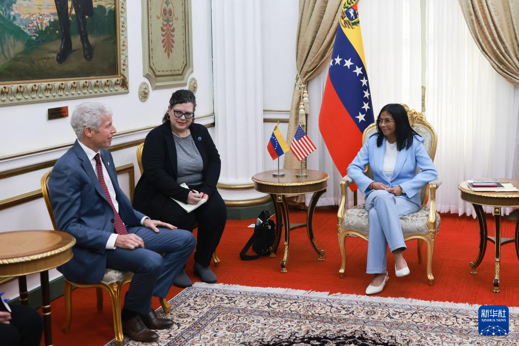委内瑞拉代总统德尔西·罗德里格斯11日在加拉加斯总统府会见美国能源部长克里斯·赖特。
