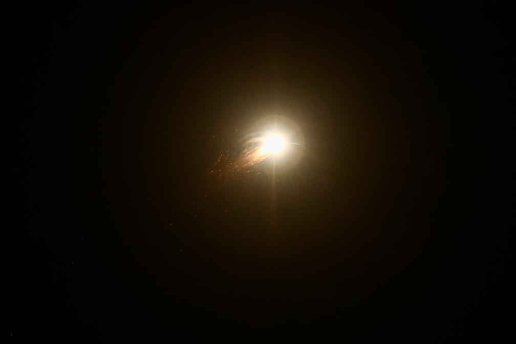 3月11日,在耶路撒冷上空,以军防空拦截弹击中导弹,导弹碎片落下。新华社发(贾马尔·阿瓦德摄)