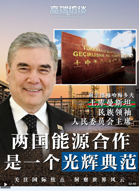 近日,土库曼斯坦民族领袖、人民委员会主席别尔德穆哈梅多夫在接受总台《高端访谈》专访时表示,能源领域是土库曼斯坦—中国战略合作的核心方向。