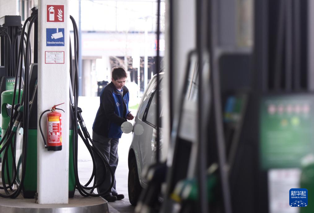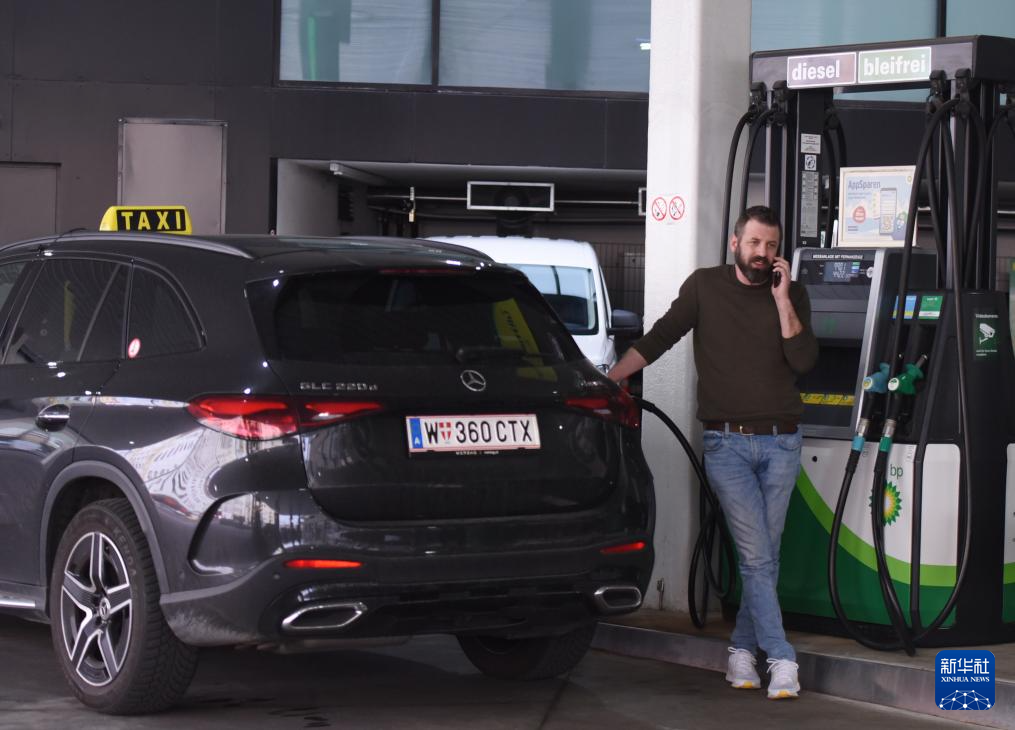 3月24日,在奥地利首都维也纳一处加油站,一名车主在加油。新华社记者 贺灿铃 摄