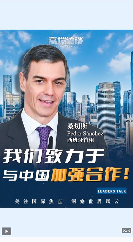 西班牙首相 桑切斯:我们是一个不仅有意愿、更愿意以实际行动和政策,为欧洲共同繁荣作出贡献的国家。我坚信,西班牙与欧洲致力于与中国加强合作、构建积极的合作议程,并在相互尊重与务实精神以及共享繁荣的基础上,与中国构建开放的关系。