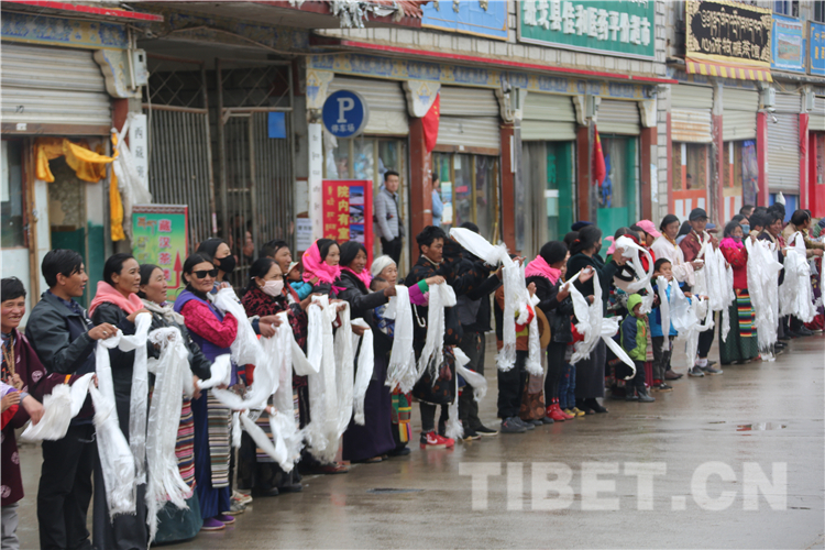 恰逢“羌塘恰青格萨尔赛马艺术节”开幕,各地的僧俗信教群众从方圆几百公里的牧区赶来,他们身着盛装,手捧哈达,满含期待地在那曲市道路两边恭迎全国政协常委、中国佛教协会副会长、中国佛教协会西藏分会会长班禅额尔德尼•确吉杰布重返家乡那曲。