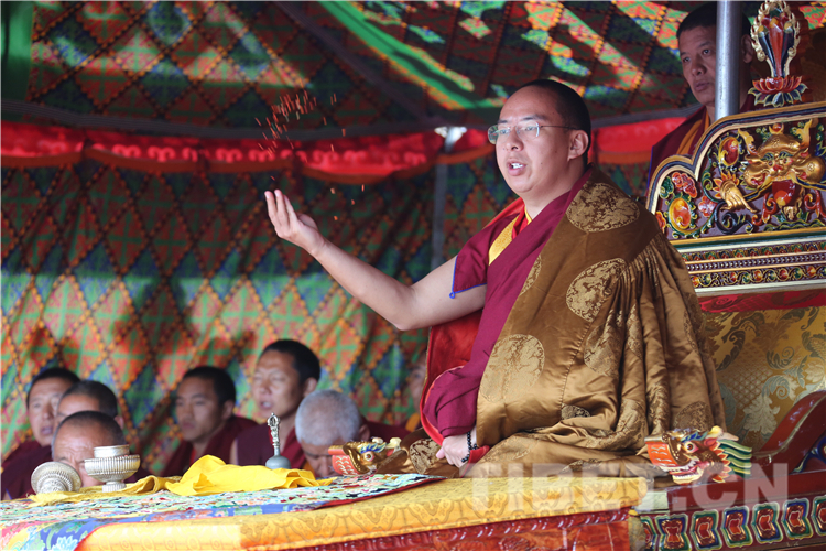 图为十一世班禅为信教群众举行长寿灌顶 摄影:扎西
