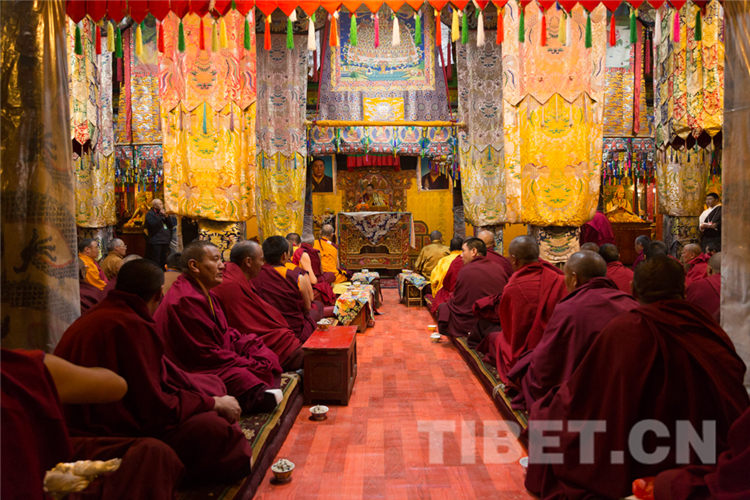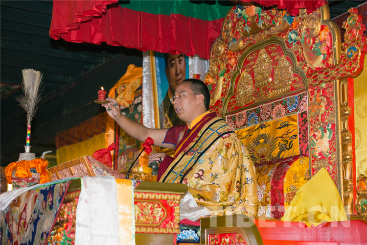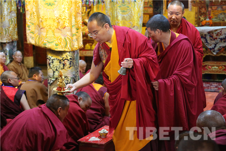 图为十一世班禅为僧众举行长寿灌顶 摄影:王淑