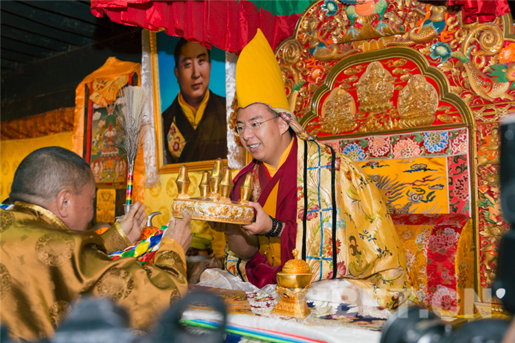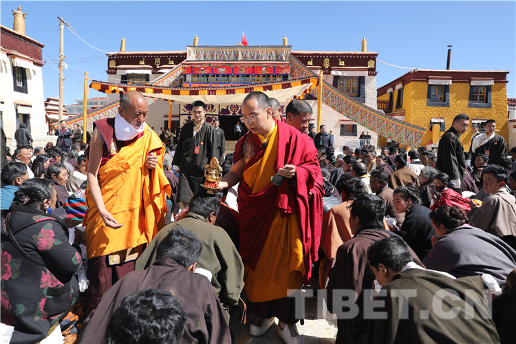 图为珠康•土登克珠活佛向十一世班禅敬献曼扎 摄影:郑朔